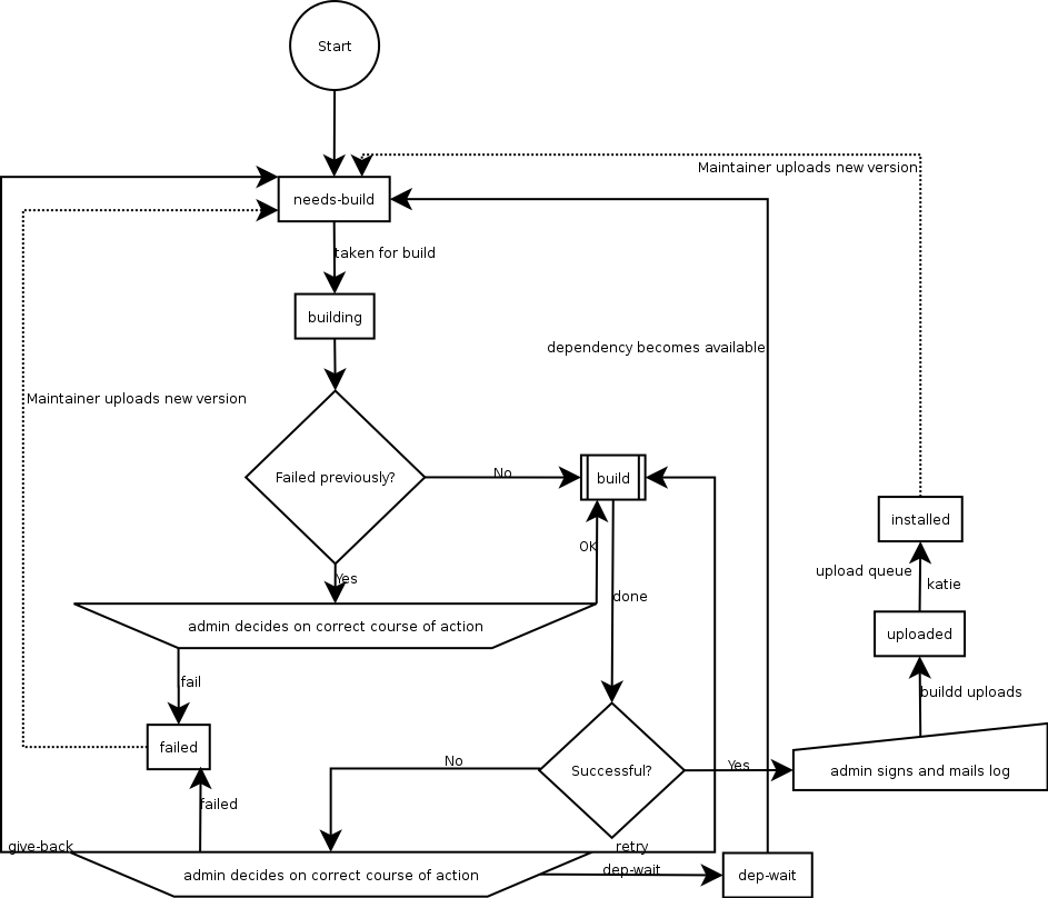 Finally, a flowchart version of the wanna-build states is available, but do note that it doesn't talk about everything mentioned in this document.
